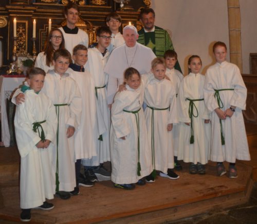 Mit einer erfrischenden Messfeier und schwungvollem Gesang und Musik starteten wir dann um 20.00 Uhr in eine lange Nacht, die vor allem bei der Jugend großen Zuspruch fand. Neben den Ministranten waren auch die Firmlinge und die Jungfeuerwehr, die sich unter fachkundiger Anleitung ums Lagerfeuer kümmerte, zahlreich vertreten. Sogar ein außergewöhnlicher Gast gab uns die Ehre und ließ sich gerne mit uns fotografieren.