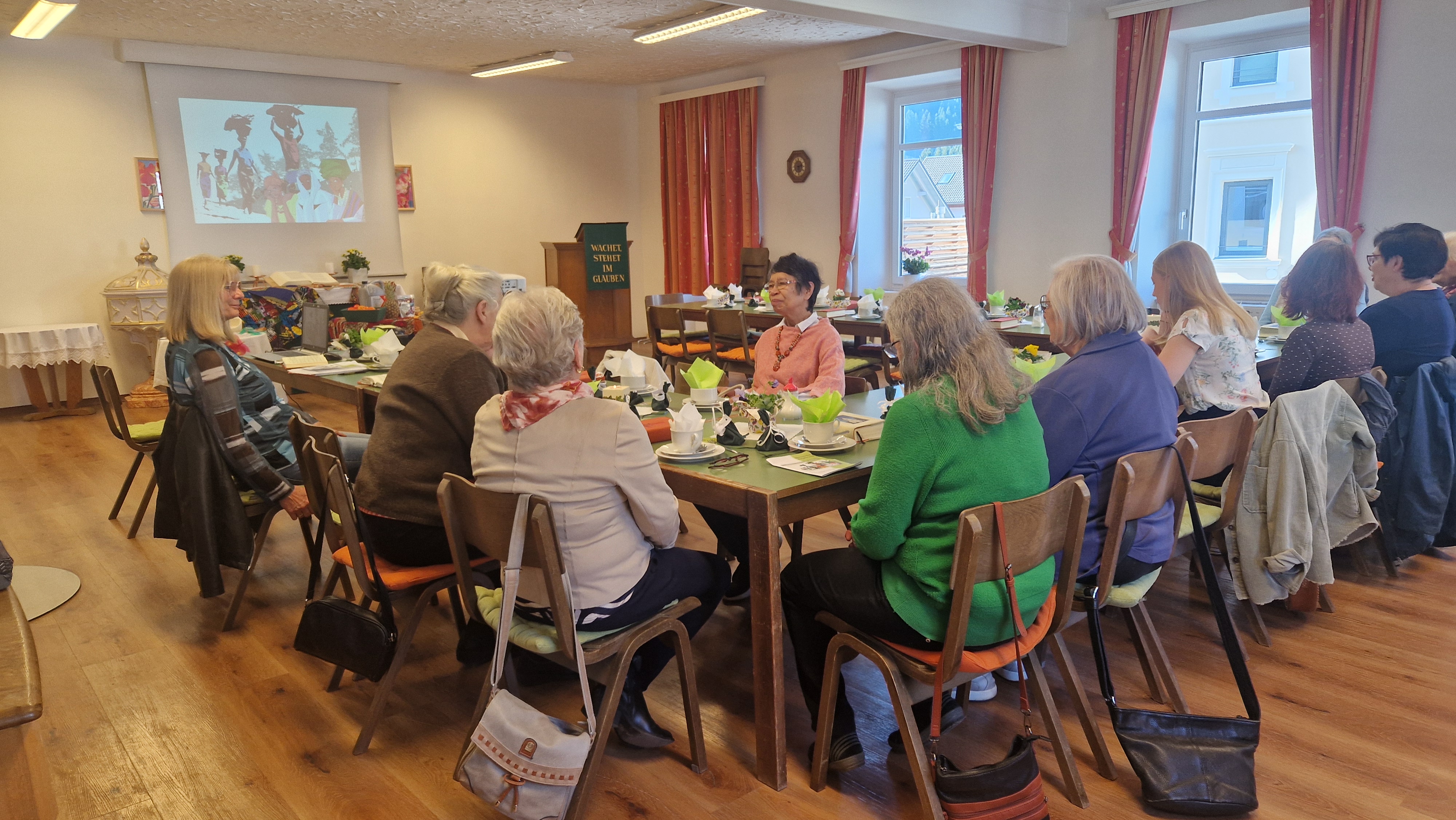In Arriach findet er abwechseld in der katholischen Kirche und im evangelischen Pfarrsaal statt. Heuer luden uns die evangelischen Frauen ein. Nach einem interessanten Gang durch die Liturgie und einer Power-Point-Präsentation stärkten wir uns bei Kaffe und Kuchen und netten Gesprächen im ökumenischen Sinne.