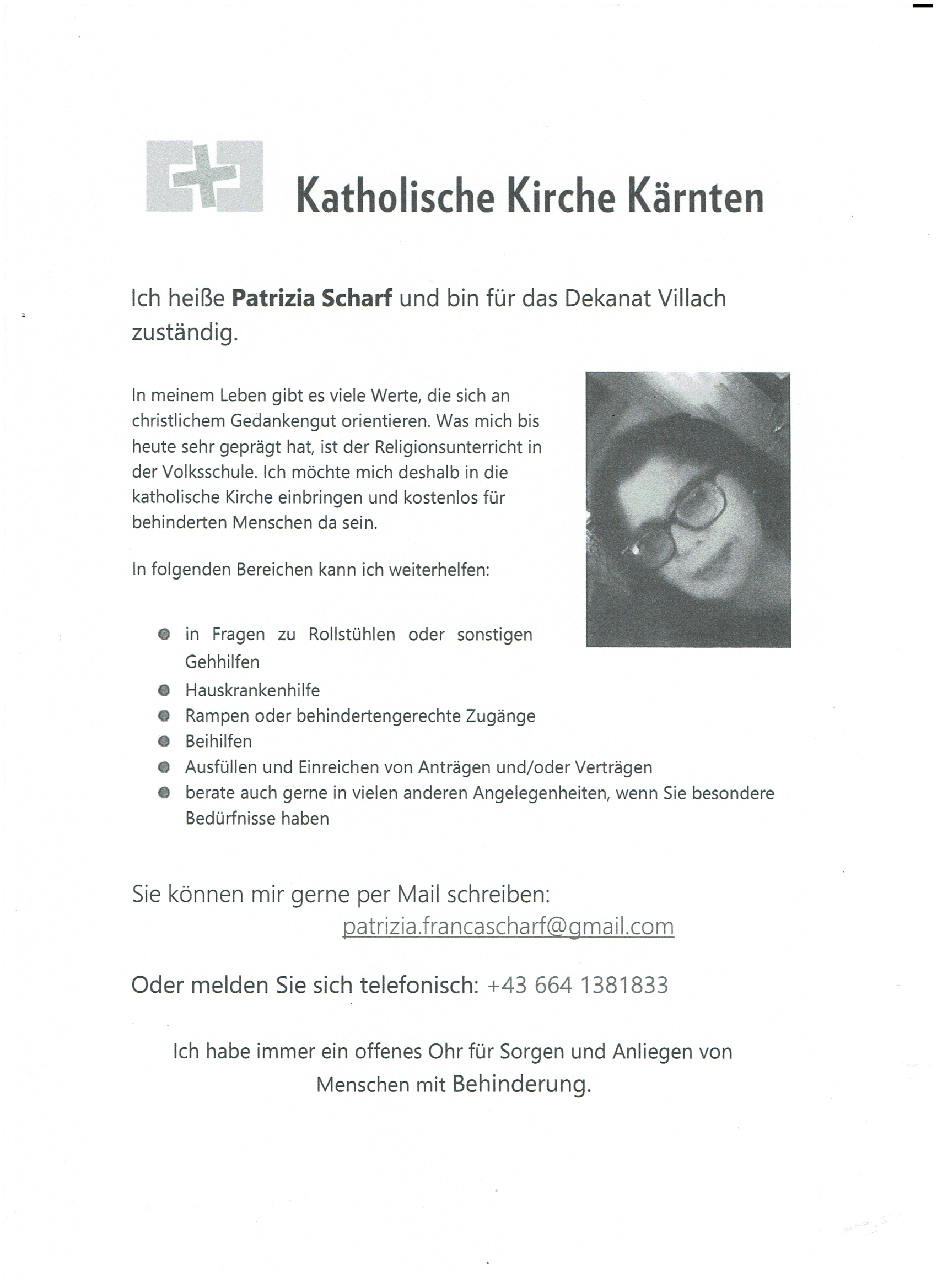 Patrizia Scharf aus der Pfarre Sankt Jakob hat gern ein offenes Ohr für Sorgen und Anliegen von Menschen mit Behinderung. Kontakt: patrizia.francascharf@gmail.com