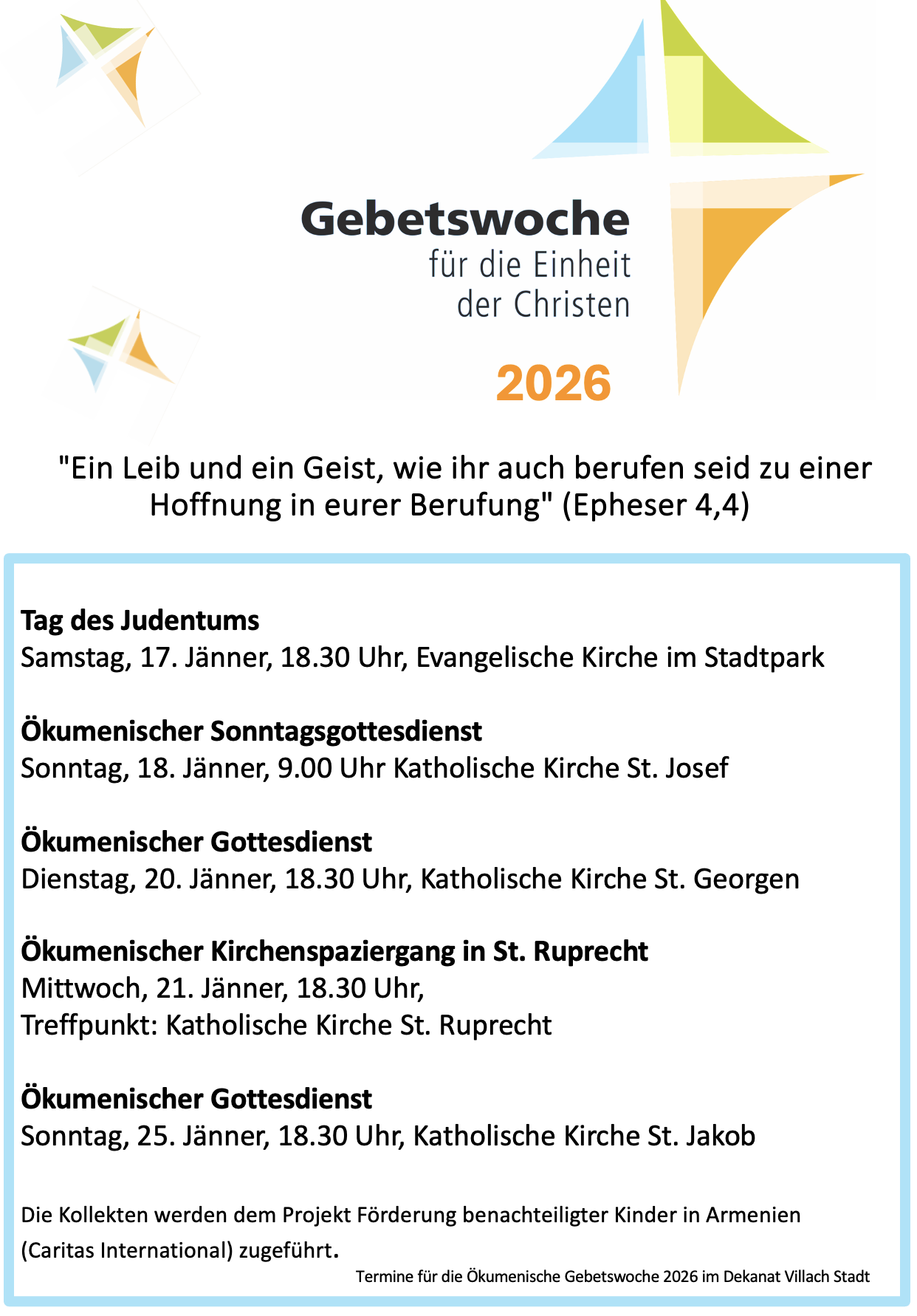 Aviso Ökumenische Gebetswoche und Tag des Judentums in Villach