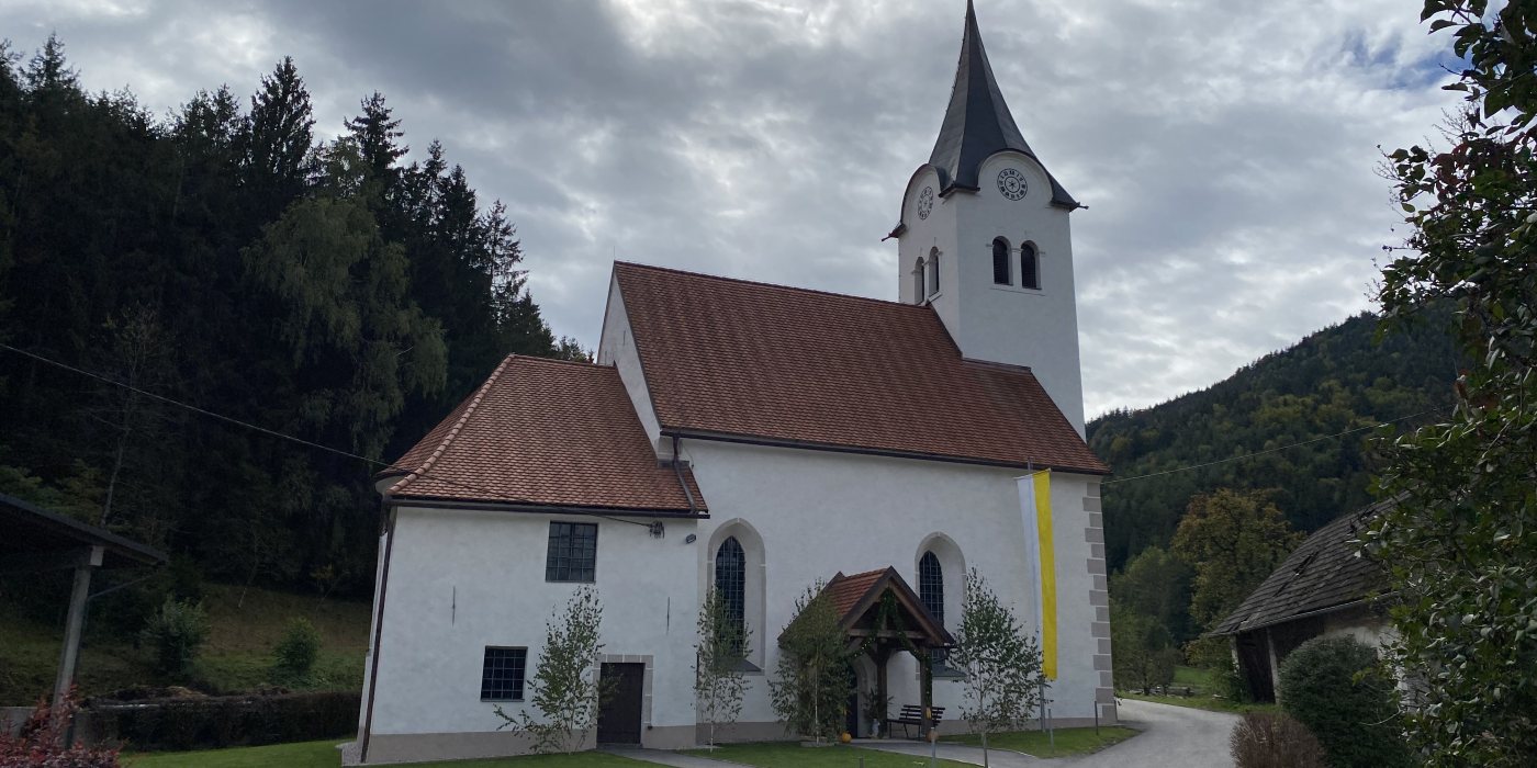 Filialkirche Bach: Hll. Bartholomäus und Oswald - Podružna cerkev Potoče: Sv. Jernej in sv. Ožbolt